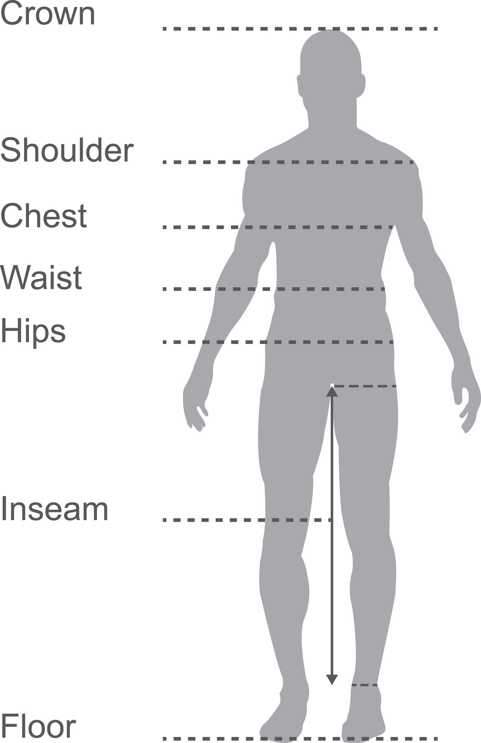For jacket, cummerbund or gown size, please refer to the following for assistance: